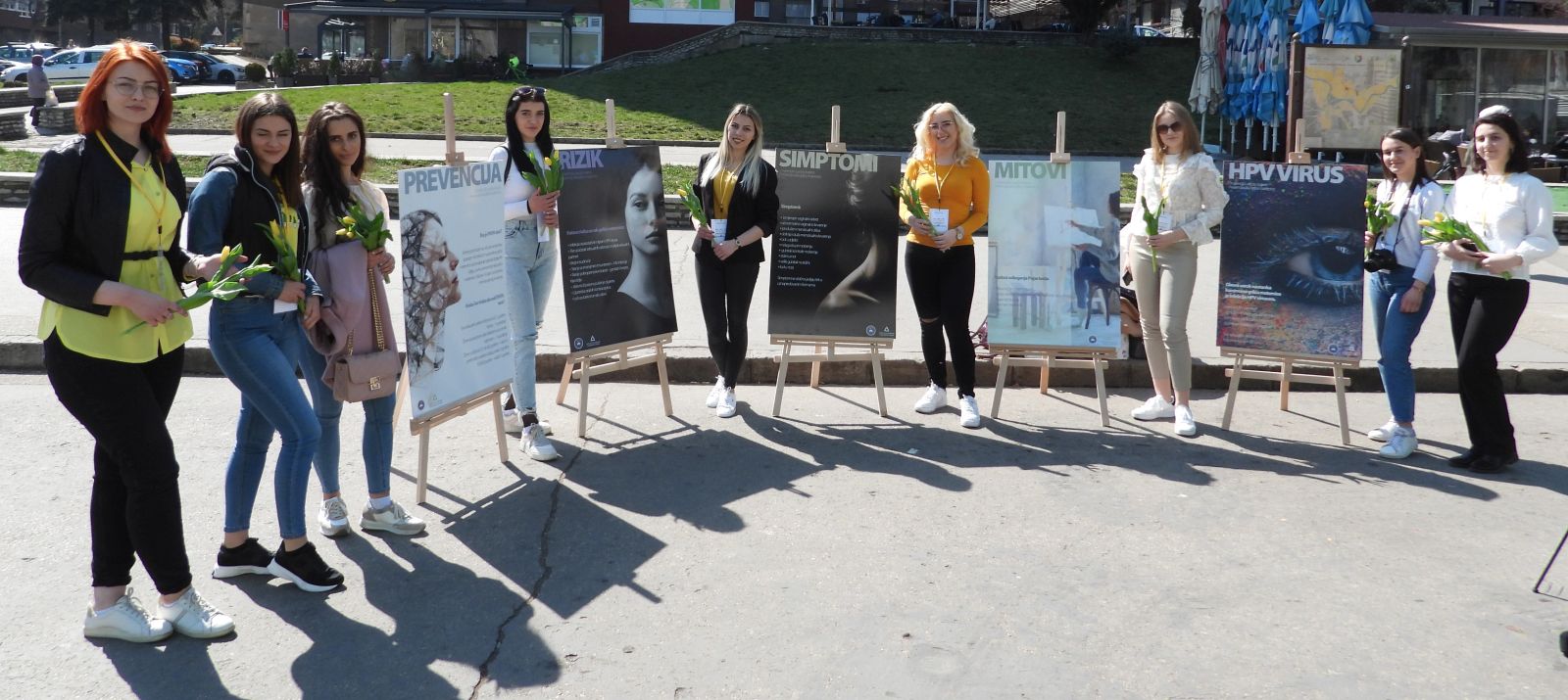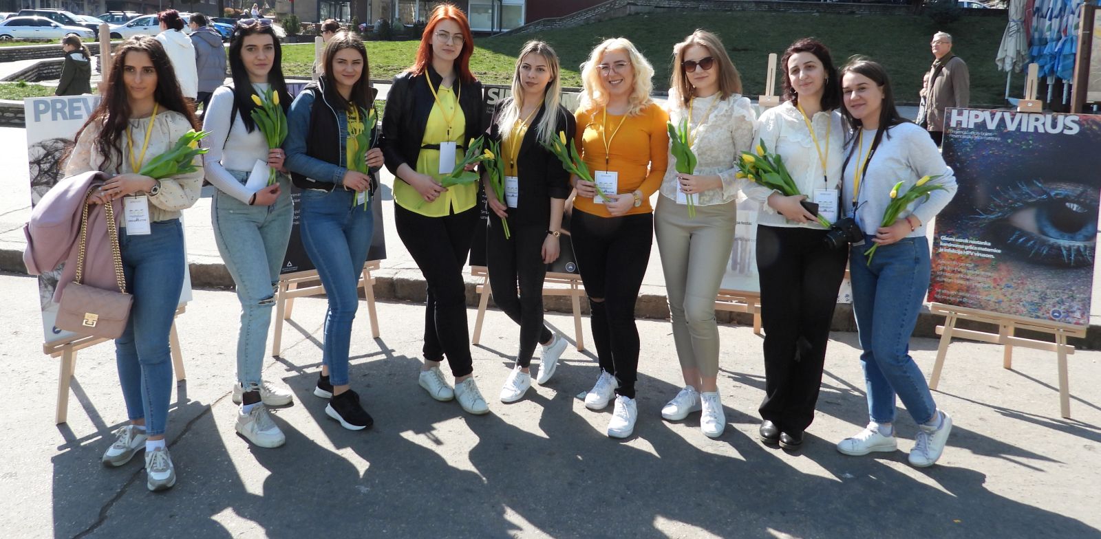 – Željeli smo podići svjesnost o prevenciji karcinoma grlića maternice. Statistika nije na našoj strani, iako ne želim govoriti o statistici, jer su to nečije majke, bake, kćerke, sestre. Poražavajuća je činjenica da, po nekim istraživanjima, više od 125 žena godišnje u Bosni i Hercegovini izgubi bitku protiv ove opake bolesti. Ovo je preventibilno oboljenje, tako da je bilo koji izgubljeni život – previše. mi želimo kroz naše današnje aktivnosti, podjelu žutih tulipana simbolično da upozorimo žene da je papa-test itekako važan i da ne treba da imaju strah, kaže Hana Muslić, studentica treće godine Medicinskog fakulteta u Zenici.