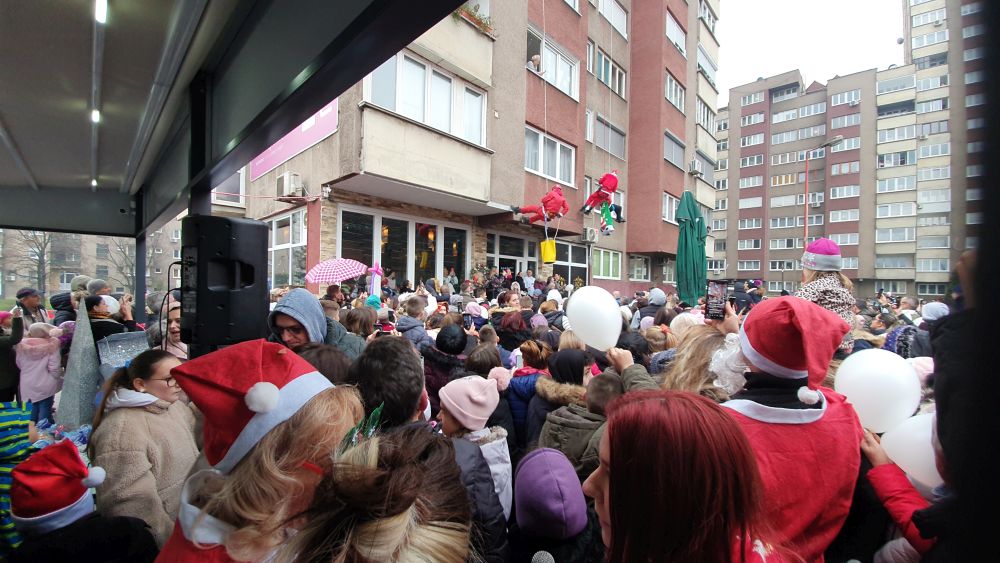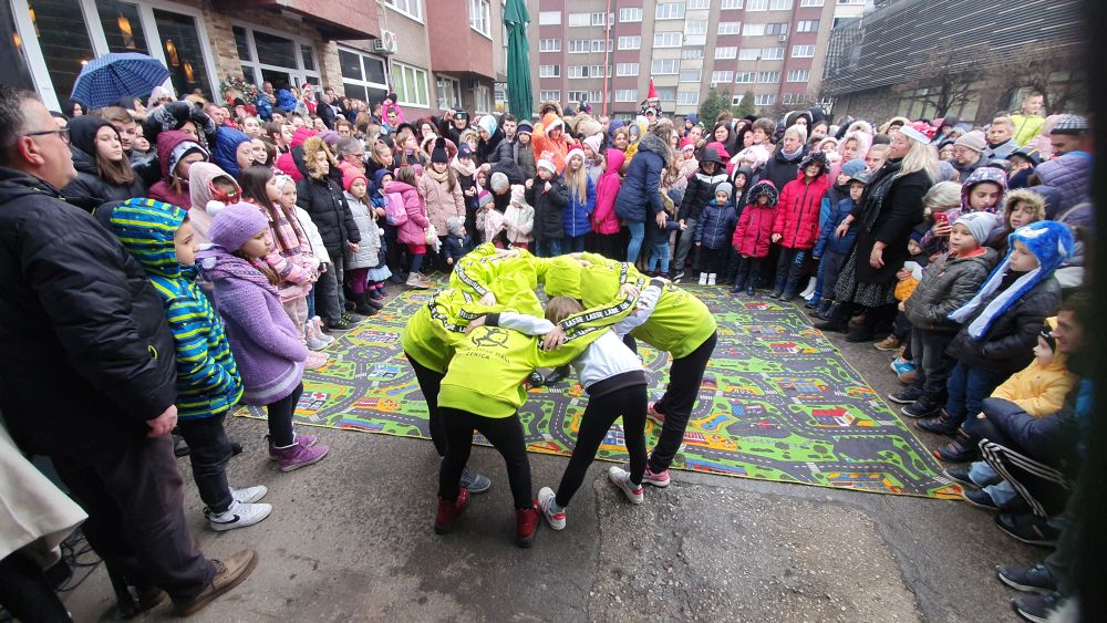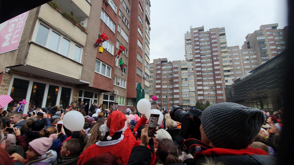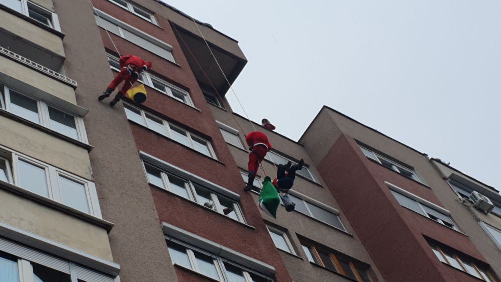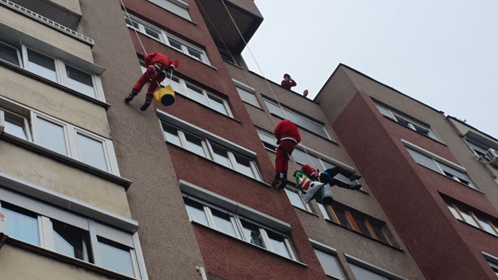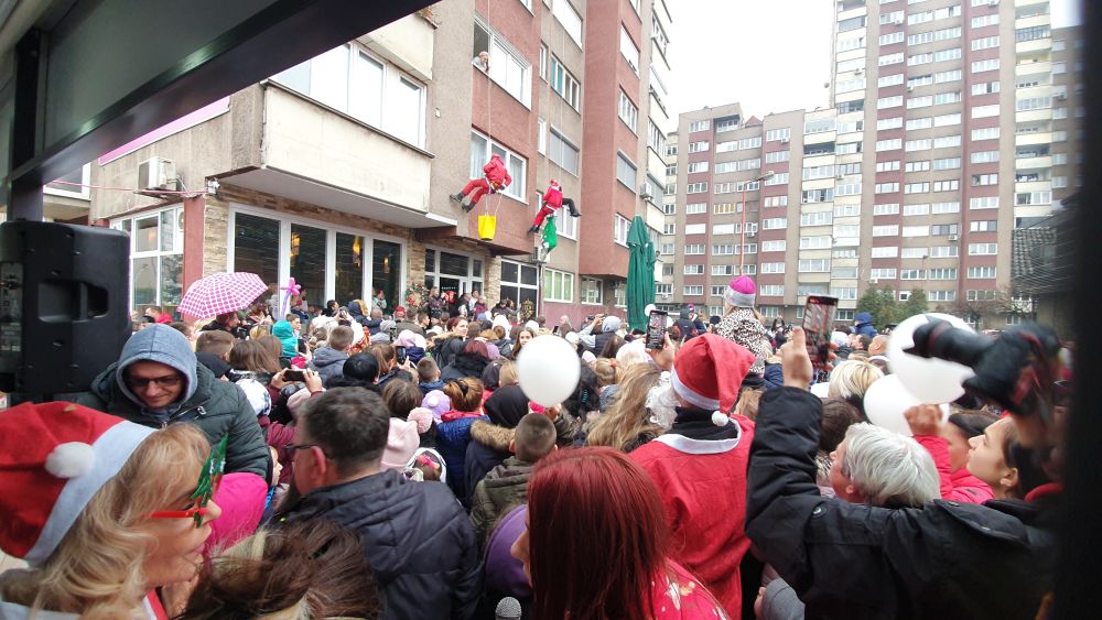 Sa vrha iste višespratnice, obučeni u odijela Djeda Mraza, članovi lokalne gorske službe spašavanja izveli su spuštanje, izazivajući ushićenje među rojem malih glava koje su im veselo skandirale. Ali pravi Djed Mraz se nikako nije pojavljivao. A onda je nastao muk uletom policijskih patrola pod sirenama i rotirajućim svjetlima. I dok su svi pomislili da će policajci prekinuti održavanje zabave zbog narušavanja javnog reda i mira, na njihovo iznenađenje policajci su iz jednog od automobila izveli pravog Djeda Mraza, koji se prema njihovom kazivanju izgubio na putu sa Sjevernog pola prema Zenici pa su se prepoznavši ga odlučili dovesti ga na ovaj događaj da njegove učesnike nagradi svojim poklon paketićima.