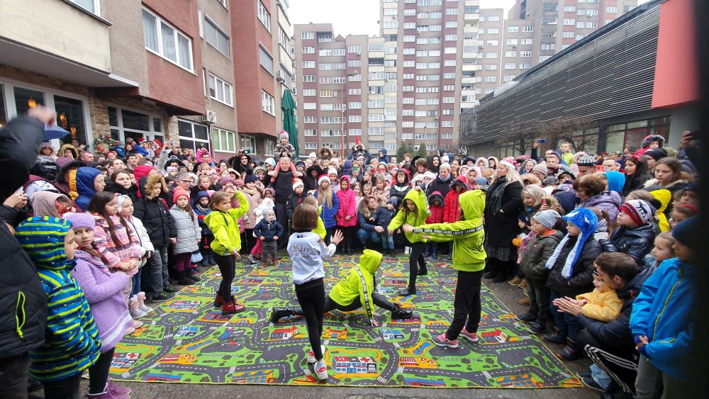Ovaj spektakl dječijeg smijeha i radosti ostat će upamćen i po bogatom zabavnom programu, ispunjenom muzikom, pjesmom i plesom, zašta su se svojski potrudili prijatelji projekta, koji su se na poziv Petrovića odazvali s velikim zadovoljstvom. Zenički mališani su uživali u čarobnim koreografijama svojih vršnjaka iz plesnog centra „Iskre“, a sa drugaricama i drugarima iz KUD-a „Plamen“ opleli su i tradicionalna kolca iz naših krajeva. Svojim glasićima pratili su pjesme perspektivne muzičke pop nade Zlatana Karića i njegovog benda, dražesno izvodili svoje vrckave pokrete sa dječijim zabavljačem Dinom Brljevcem, a uz prijatelje iz udruženja „Sevdah“ pokazali i kao odlični poznavaoci naših starogradskih nota. Kroz novogodišnju čaroliju sa svojim sadržajima vodili su ih talentirani članovi Dječije i omladinske scene pri Bosanskom narodnom pozorištu Zenica, čiji je direktor i glumac Miroljub Mijatović zajedno sa braćom Petrović režirao program cijelog događaja. Tokom igre i pjesme uz vesele melodije organizatori su na najmlađe bacali plišane igračke, dok su se neki u međuvremenu zabavljali oslikavanjem lica sa bodipejting umjetnicom Belmom Karić.