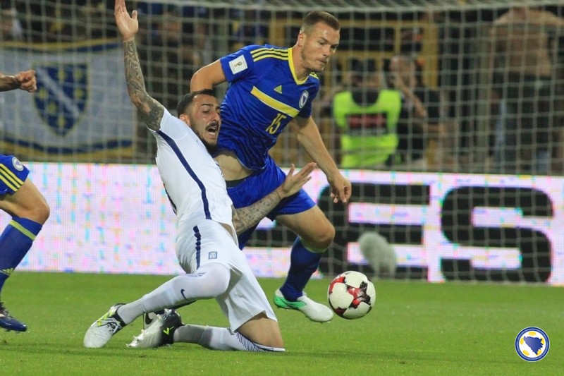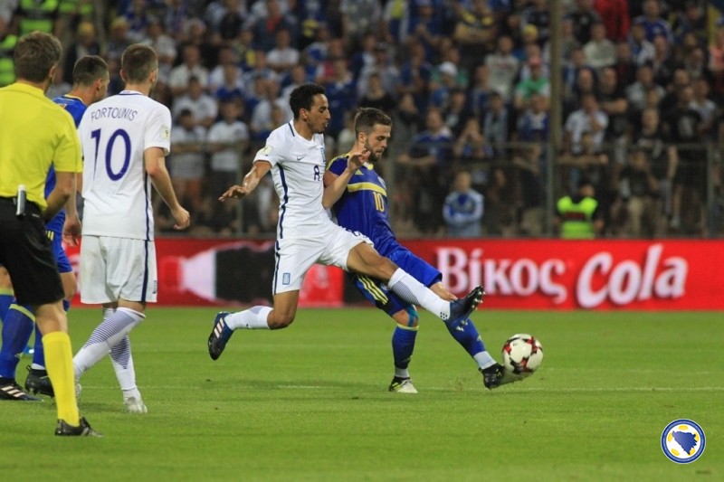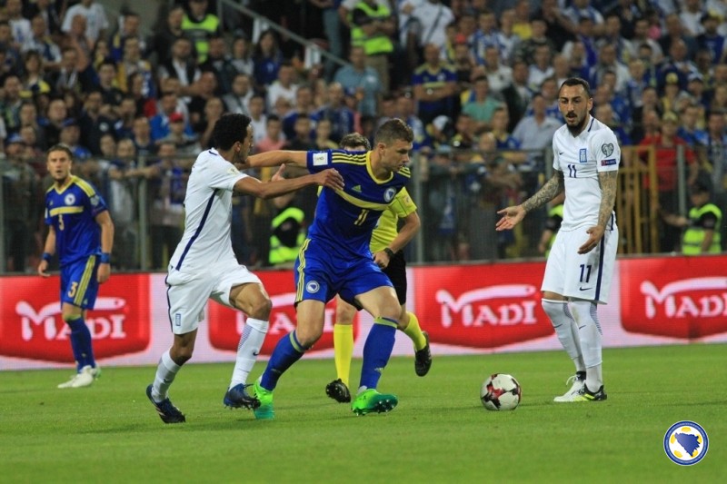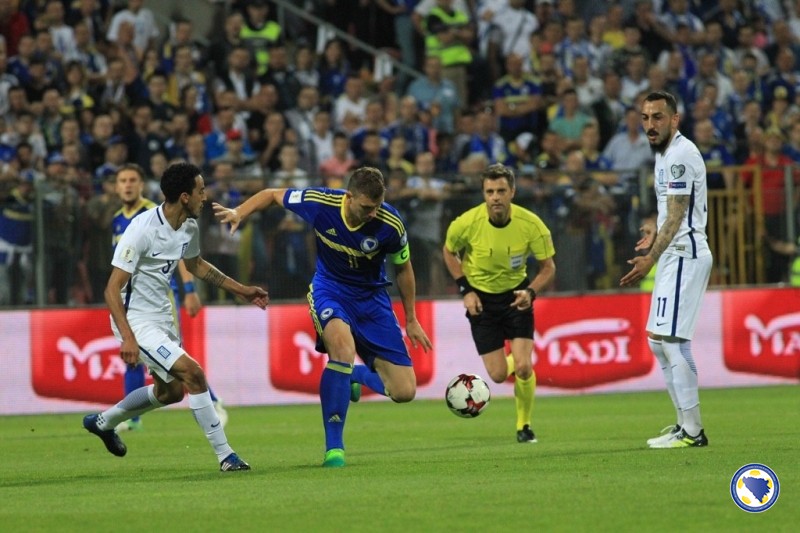 VIDEO+FOTO: Zmajevi remizirali protiv Grčke na Bilinom polju, incidenti na kraju na terenu i tribinama – U šestom kolu kvalifikacija za SP reprezentacija Bosne i Hercegovine odigrala je večeras na „Bilinom polju“ neriješeno 0:0 sa Grčkom. Prvu priliku na utakmici imao je bh tim u 12′. Ibišević je proigrao Višću u kaznenom prostoru Grčke, a golman Karnezis je na vrijeme istrčao i zaustavio udarac našeg reprezentativca. U 19′ je pokušao i Pjanić sa distance ali nije bio precizan.