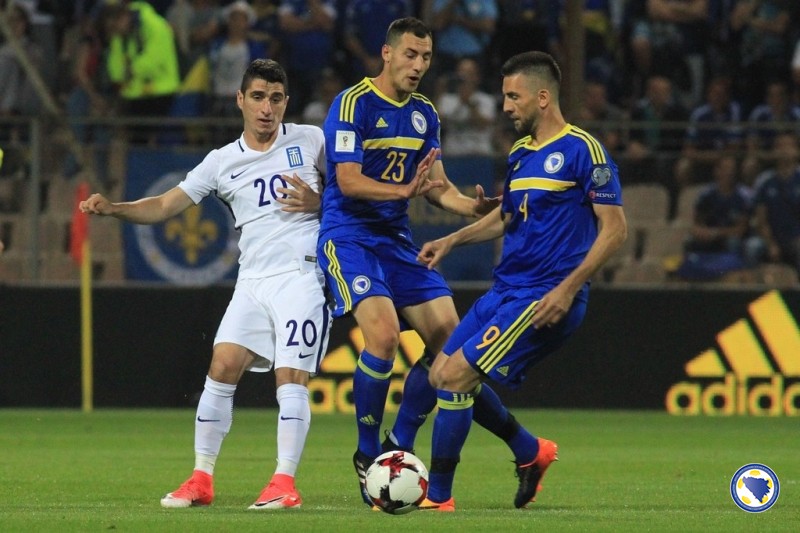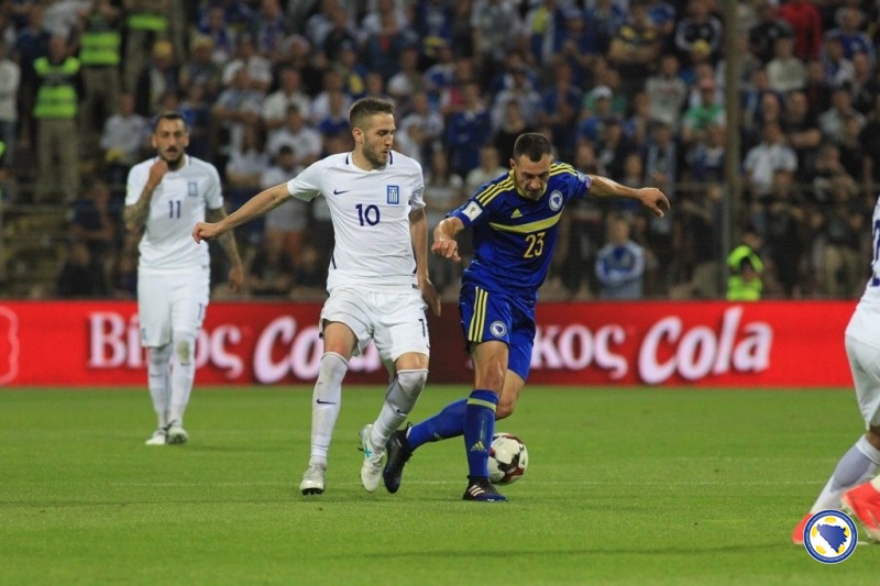 VIDEO+FOTO: Zmajevi remizirali protiv Grčke na Bilinom polju, incidenti na kraju na terenu i tribinama – U šestom kolu kvalifikacija za SP reprezentacija Bosne i Hercegovine odigrala je večeras na „Bilinom polju“ neriješeno 0:0 sa Grčkom. Prvu priliku na utakmici imao je bh tim u 12′. Ibišević je proigrao Višću u kaznenom prostoru Grčke, a golman Karnezis je na vrijeme istrčao i zaustavio udarac našeg reprezentativca. U 19′ je pokušao i Pjanić sa distance ali nije bio precizan.