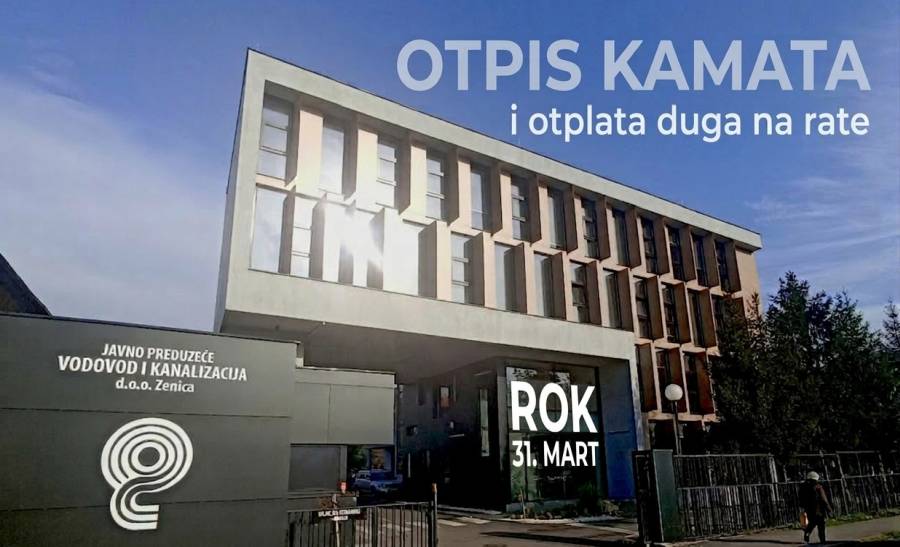 Građani Zenice i pravni subjekti u ovom gradu koji imaju dugovanja za komunalne usluge vode i kanalizacije do kraja marta imaju priliku da značajno umanje svoje obaveze, jer je na snazi odluka koja omogućava otpis obračunatih kamata, al i plaćanje obaveza u više rata.