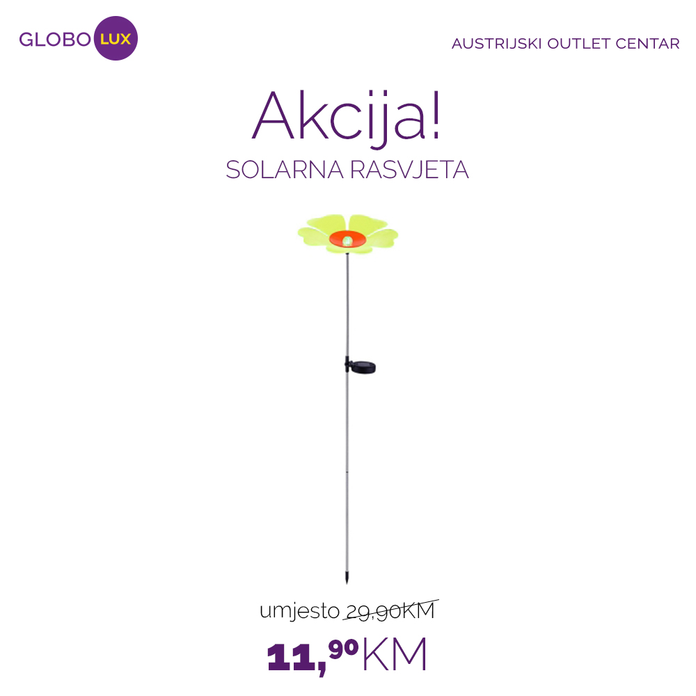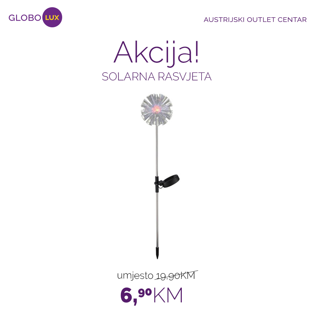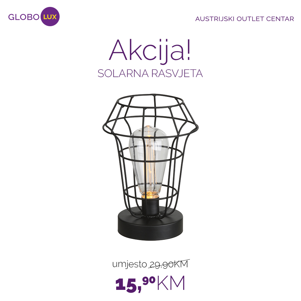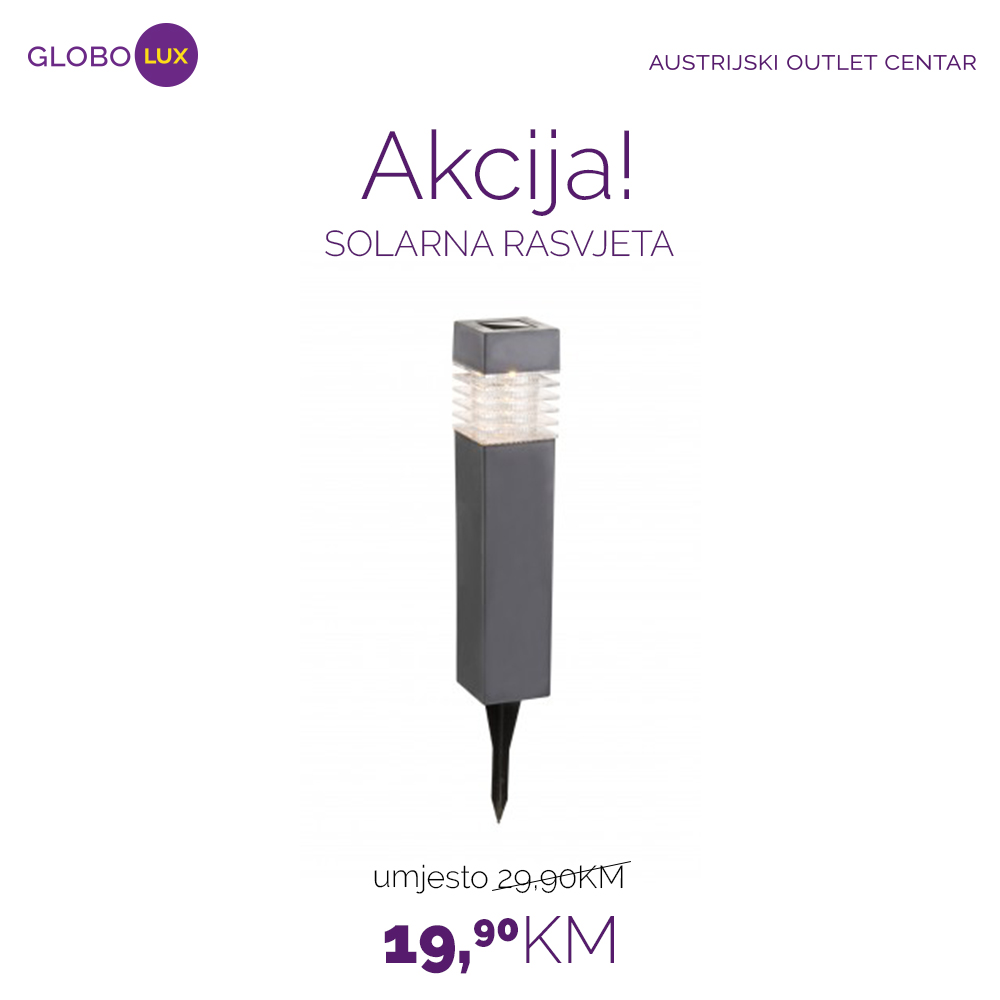 Vikend akcija: Globo Lux – Iz Globo Luxa, za predstojeći vikend, za Vas izdvajaju akciju raznovrsnog asortimana solarne rasvjete.