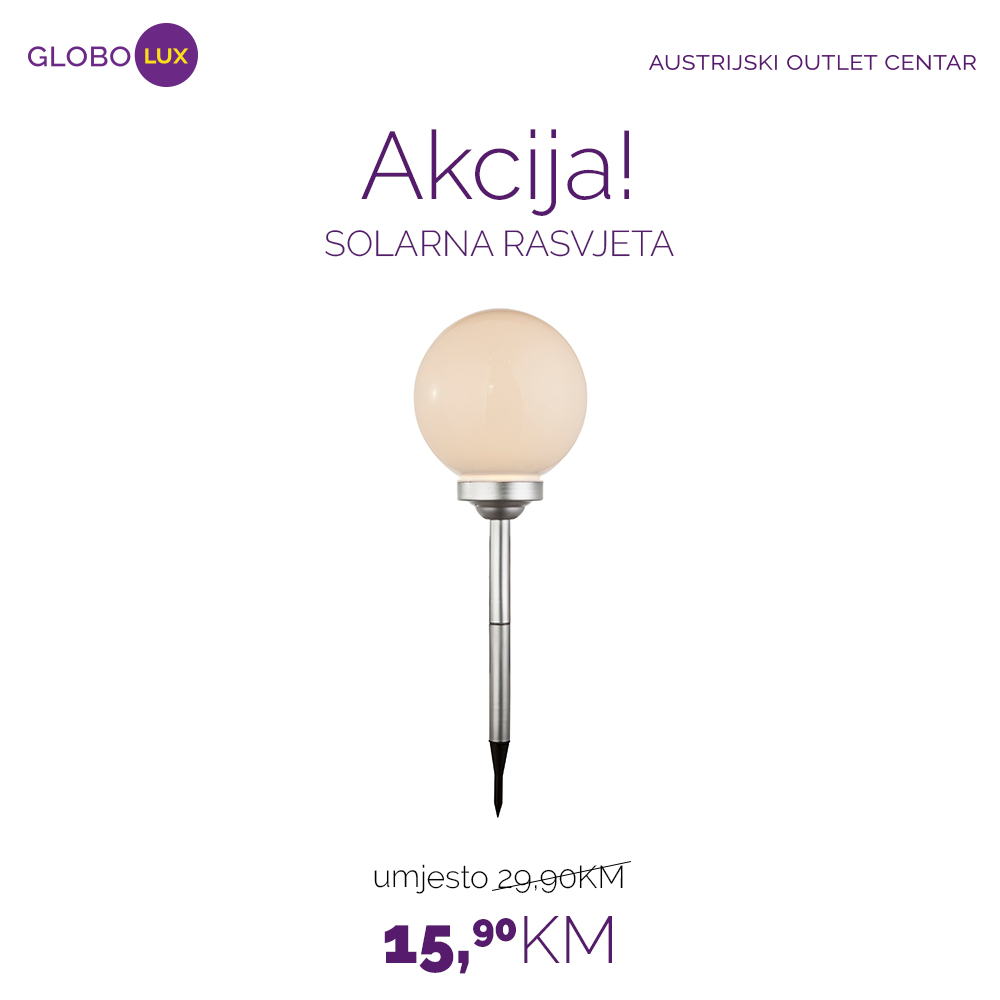 Vikend akcija: Globo Lux – Iz Globo Luxa, za predstojeći vikend, za Vas izdvajaju  akciju raznovrsnog asortimana solarne rasvjete.