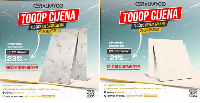 Poštovani kupci, pripremili smo za vas vikend akciju na odabrane modele keramičkih pločica po super cijenama!