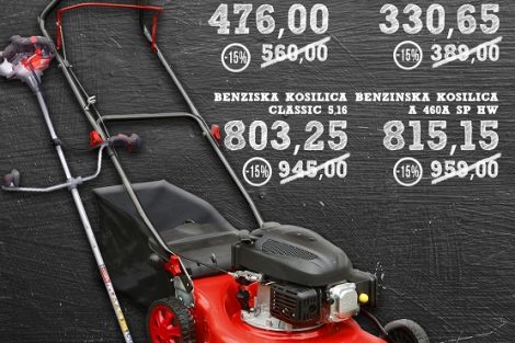 Odabrani artikli kosilica sniženi 15%, te ostali artikli 20%. Akcijsko sniženje važi samo za gotovinsko plaćanje i traje 14. i 15.03.2020. god. u bau centrima u Zenici i Zavidovićima.