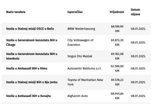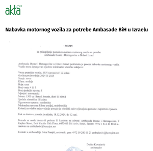 Ostalo je još da se izabere dobavljač automobila za potrebe Ambasade BiH u Izraelu.