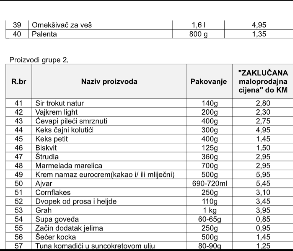 Ovom odlukom se za 65 proizvoda, koji su podijeljeni u dvije grupe, propisuje najviši nivo maloprodajnih cijena. Listu možete pogledati u fotogaleriji.
