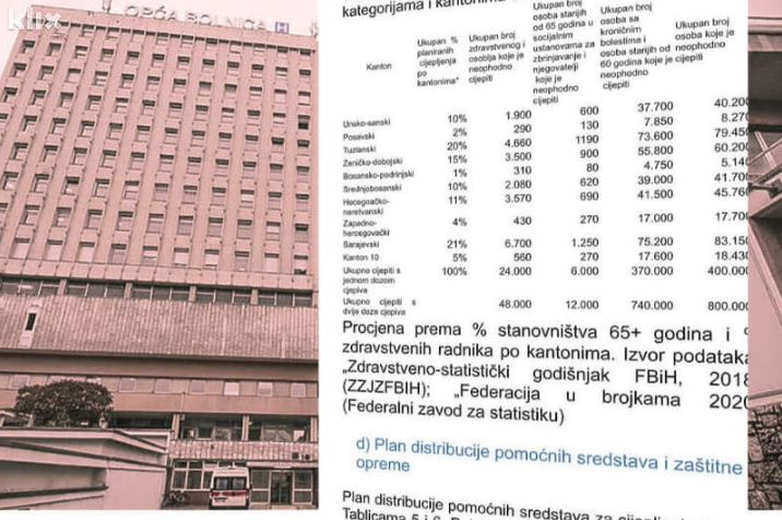 U tabeli se navodi i tačan broj zdravstvenih radnika koje je potrebno imunizirati po kantonima, kao i broj osoba starijih od 65 godina u socijalnim ustanovama te hroničnih bolesnika i starijih od 60 koje je potrebno vakcinisati.