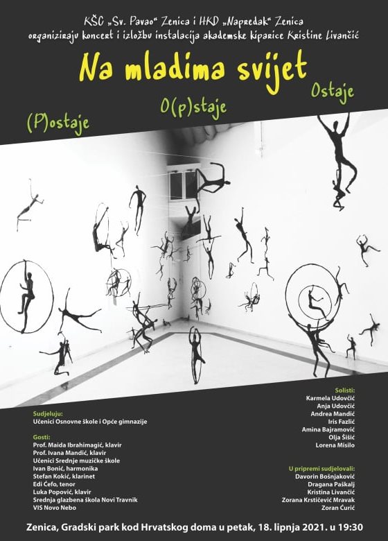 U organizaciji Katoličkog školskog centra „Sveti Pavao“ Zenica i Hrvatskoga kulturnoga društva „Napredak“ Zenica u petak, 18. lipnja će u ovom gradu biti upriličen koncert učenika i prijatelja Katoličkog školskog centra te izložba akademske kiparice i profesorice likovne umjetnosti Kristine Livančić.
