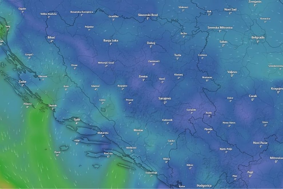 Za danas je najavljeno oblačno vrijeme u cijeloj zemlji. U nižim područjima Bosne očekuju se kiša ili susnježica, dok će u višim predjelima padati snijeg. Hercegovinu će povremeno zahvatiti slaba kiša. Na jugu i jugozapadu puhat će umjerena bura, a u ostatku zemlje slab sjeverni vjetar. Dnevne temperature bit će od 0 do 6 stepeni, na jugu do 11 °C.