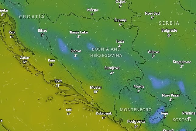 Jutarnji minusi izgledni su još u petak, dok se tokom vikenda slab mraz može javiti u kotlinama centralne Bosne. Minimalne temperature u Bosni kretat će se između -3°C i 3°C, a na jugu zemlje od 2°C do 6°C. Najviše dnevne temperature dosezat će od 4°C do 9°C, dok će na jugu zemlje biti toplije, do 14°C.