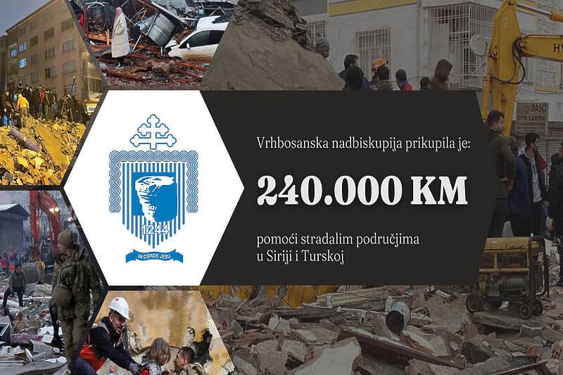 Župe i samostani u Vrhbosanskoj nadbiskupiji u nedjelju, 19. februara pod svetim misama prikupljali su dodatnu milostinju za potresom stradala područja u Siriji i Turskoj te su skupili iznos od 240.000 KM.