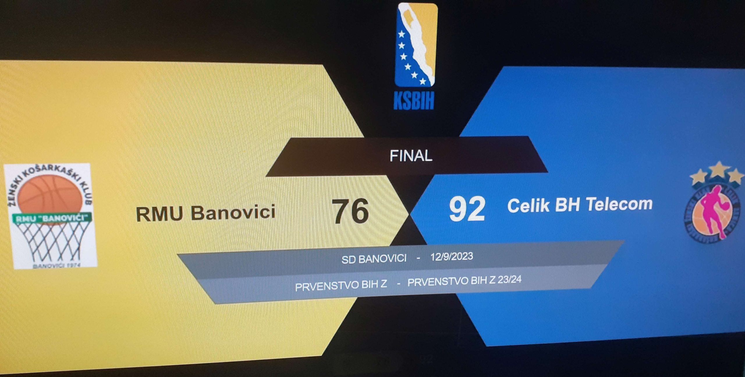 ŽKK RMU BANOVIĆI – KŽK ČELIK BH TELECOM 76:92 (17:19), (15:27), (20:14), (24:32);