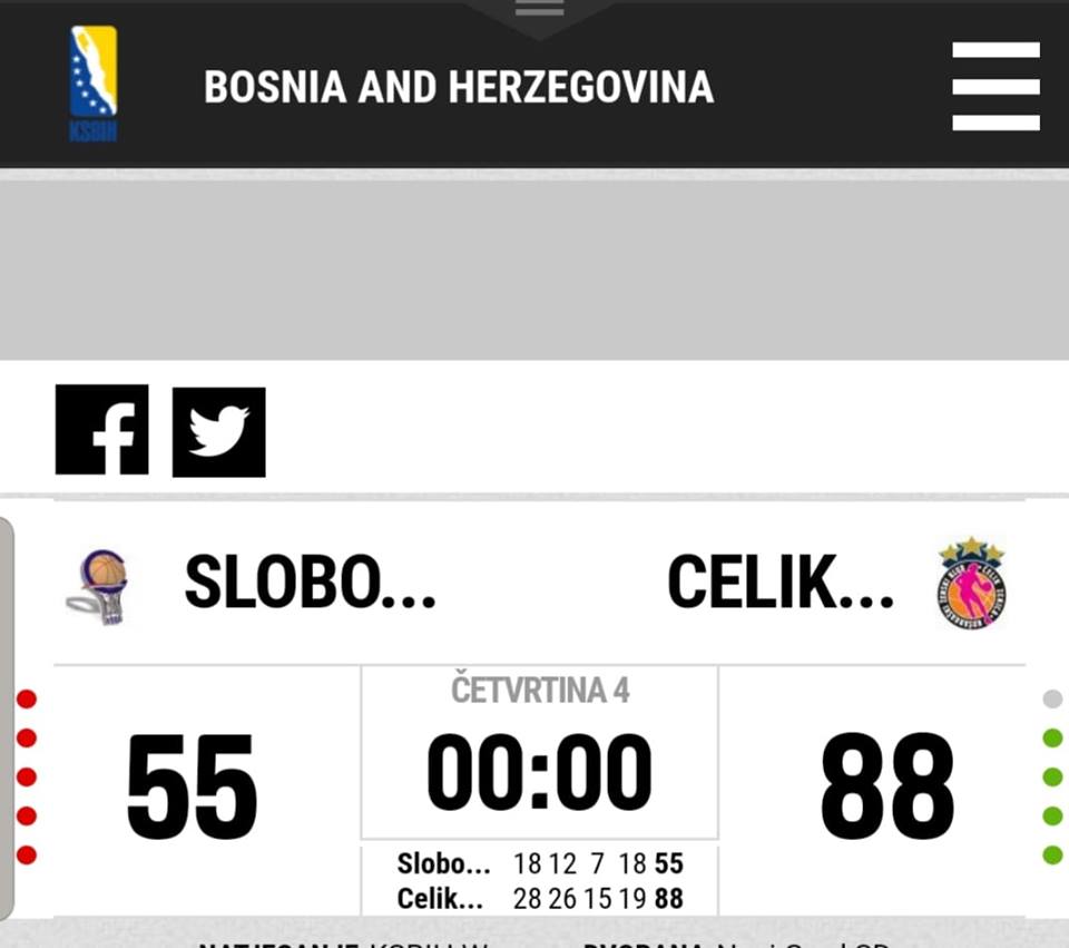 Završilo je sa + 33 poena za Zeničanke, 55:88, sa odličnom igrom mlade Zerine Čičak, koja je ostvarila triple-double učinak od 10 poena, 10 osvojenih lopti i 13 skokova. Istakle su se i kapiten Anida Ćorović sa double-double učinkom od 15 poena i 11 asistencija i Nedžla Kovačević sa 18 poena.