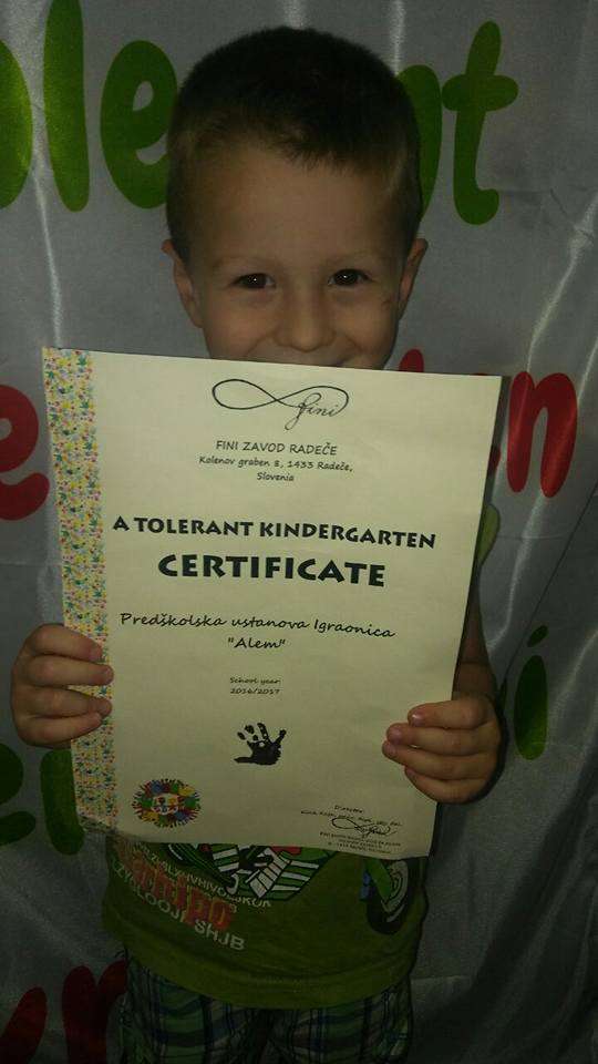 Vrtić Alem je dobio Međunardoni Certifikat Tolerantnosti, i kao takav postao jedini vrtić u Bosni i Hercegovini sa takvim priznanjem. Ovo nije kraj ovakvog vida aaktivnosti, već samo početak novih, boljih i drugačijih aktivnosti u Zenici, ali i Bosni i Hercegovini.