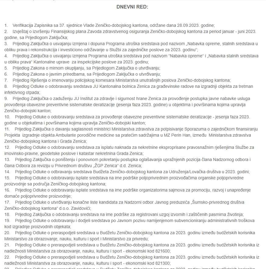 1. Verifikacija Zapisnika sa 37. sjednice Vlade Zeničko-dobojskog kantona, održane dana 28.09.2023. godine;