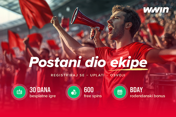 Registrirajte se i napravite prvu uplatu do Nove godine, WWIN vam poklanja 600 besplatnih spinova u vrijednosti od 60 eura ili 120 KM.​