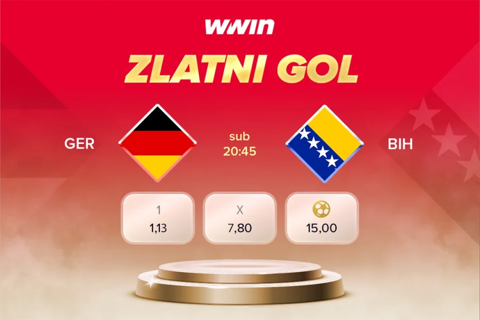 Samo na WWIN-u, gdje su pravila na vašoj strani, već danas uživajte u jedinstvenom klađenju uz Zlatni Gol promociju! Kladite se na konačni ishod utakmice Njemačka – Bosna i Hercegovina.