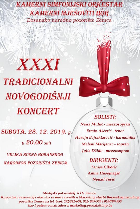 NOVOGODIŠNJI KONCERT ĆE SE ODRŽATI U SUBOTU, 28. 12. 2019. god. NA VELIKOJ SCENI BOSANSKOG NARODNOG POZORIŠTA ZENICA, SA POČETKOM PREMIJERE U 20,00 h.