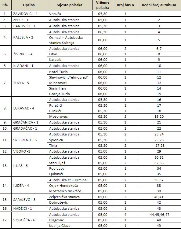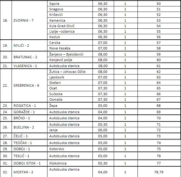 Autobusi sa područja Republike Srpske idu nezavisno od kolona, sa naznačenim terminima polaska.