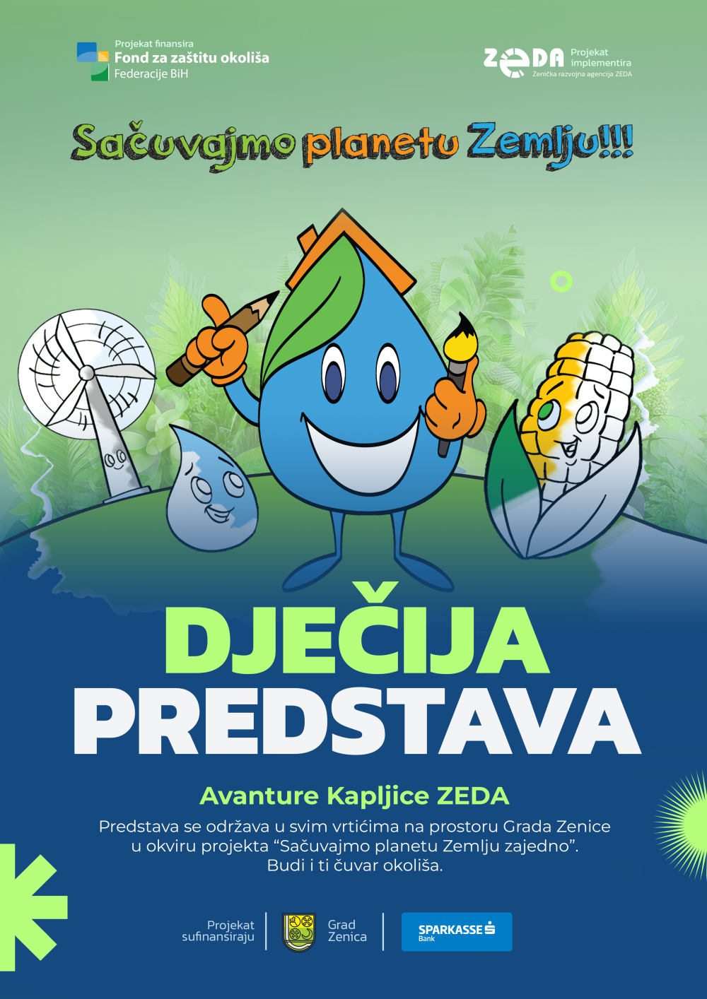 Naučimo štedjeti energiju kroz dječiju predstavu AVANTURE KAPLJICE ZEDA kroz boje, igru, ples, radionice, takmičenja, nagrade. Sjajna zabava vas čeka.