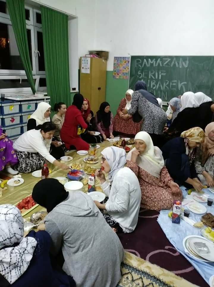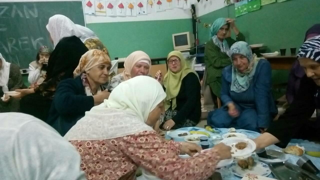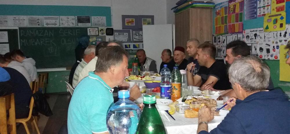 Nakon toga zajednički su iftarili raspoređeni po učionicama. Kako nam rekoše, jedna zaista lijepa atmosfera i druženje džematlija.