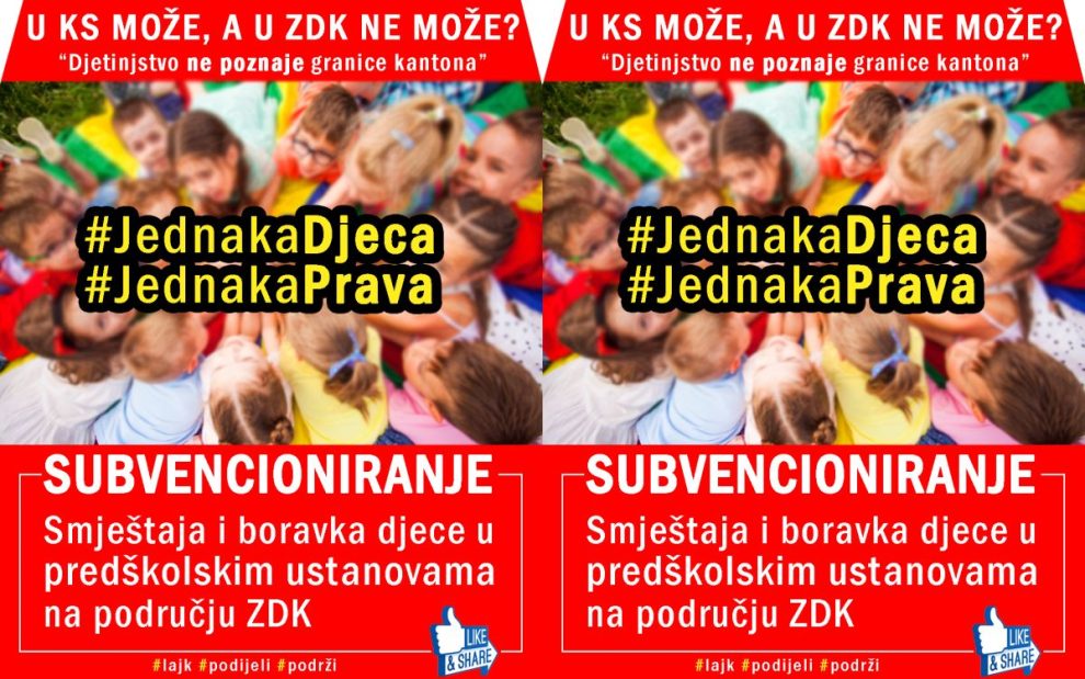Zajedno s roditeljima pokrećemo kampanju za subvencioniranje boravka djece u predškolskim ustanovama ZDK- Zajedno sa roditeljima pokrećemo javnu kampanju “Subvencioniranje smještaja i boravka djece u predškolskim ustanovama na području ZDK”