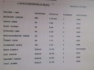 Na ovom mitingu u Sarajevu učestvovali su i mladi atletičari AK Zenica. Njihove rezultate nam je poslao Aziz Kevelj, trener i generalni sekretar u AK Zenica.