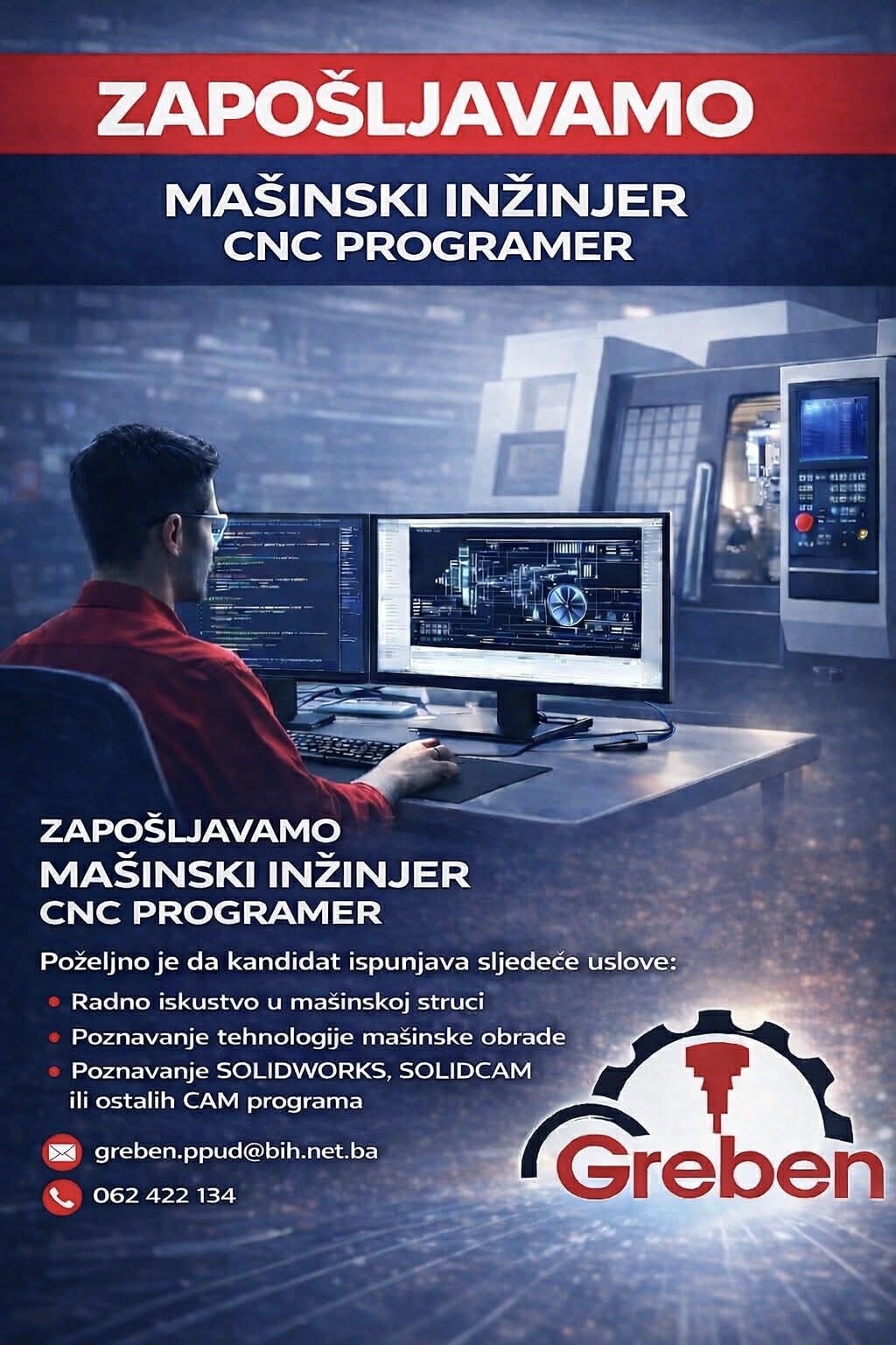 ZAPOŠLJAVAMO: Mašinski inžinjer – CNC programer