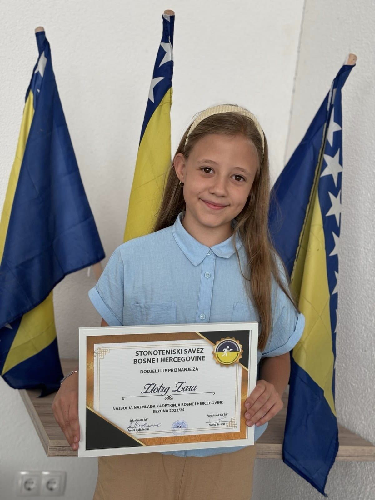 Naša Zara Zlotrg je proglašena najboljom najmlađom kadetkinjom u BiH na osnovu ostvarenih rezultata i zauzetog 1. mjesta na rang listi.