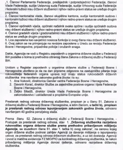 – Prema članu 52. Zakona o državnoj službi u FBiH potupak za prestanak radnog odnosa državnog službenika razrješava rukovodilac organa državne službe prema prethodno pribavljenom mišljenju Agencije, sa izuzetkom člana 51. ovog zakona na osnovu kojeg organ državne službe podnosi zahtjev Agenciji za davanje mišljenja o ispunjavanju uvjeta za prestanak radnog odnosa državnom službeniku, a uz koji dostavlja Agenciji izvod iz matične evidencije FZ PIO za konkretnog državnog službenika te nakon pribavljenog mišljenja Agencije donosi rješenje, odnosno, razrješava državnog službenika – pojašnjavaju iz Agencije.