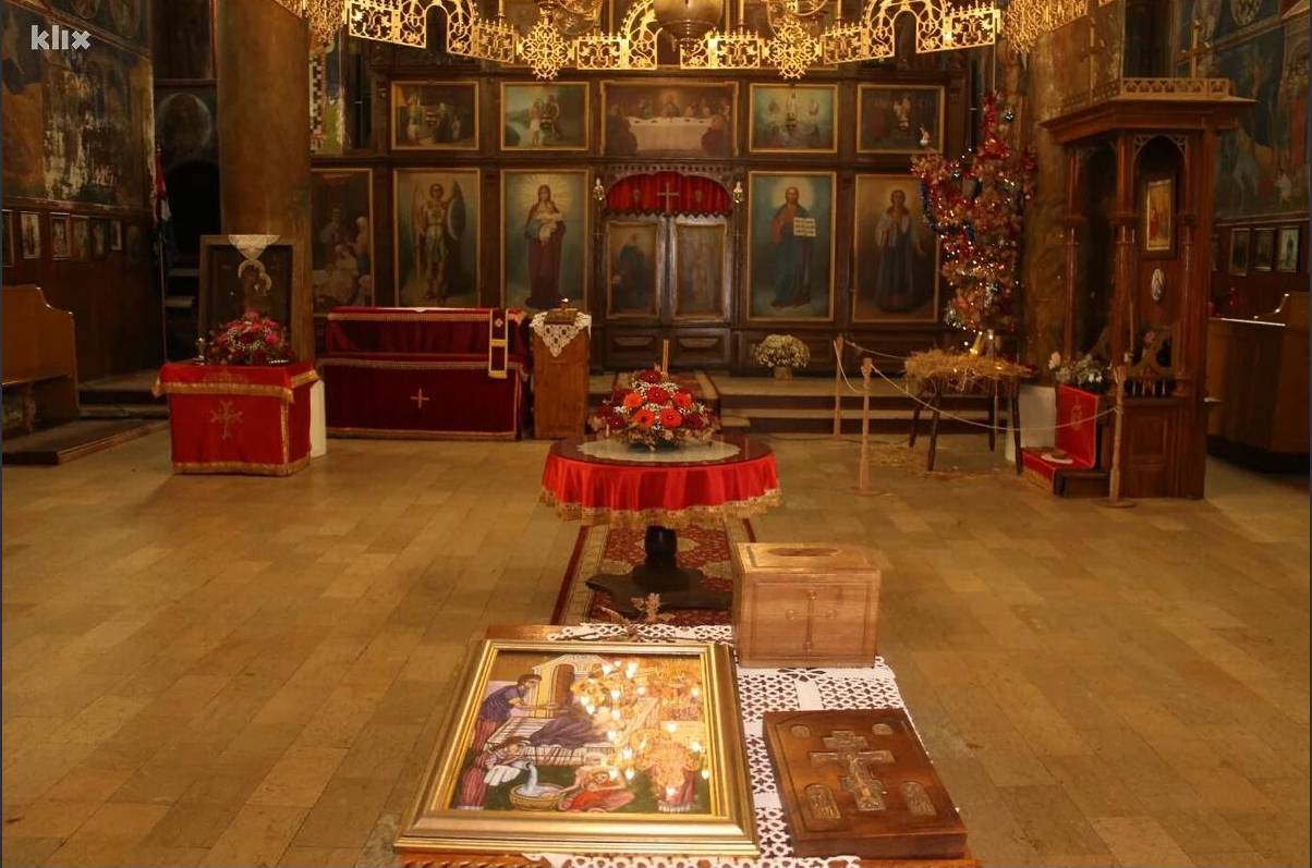 Sinoć je ispred ove crkve zapaljen badnjak, a jutros je održana božićna liturgija i pričest vjernika sa Hristom na veliki blagdan. E.M. Klix