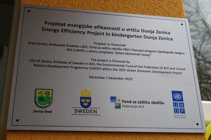 Sredstva za vrtić su osigurali po polovinu Grad Zenica na jednoj, te federalni Fond za zaštitu okoliša, UNDP i ambasada Švedske na drugoj strani, uokviru projekta Zeleni ekonomski razvoj UNDP-a. Najavljeno je da je sljedeći objekat, koji će zajedničkim sredstvima biti obuhvaćen projektom energetske efikasnosti, obdanište “Pinokio”.