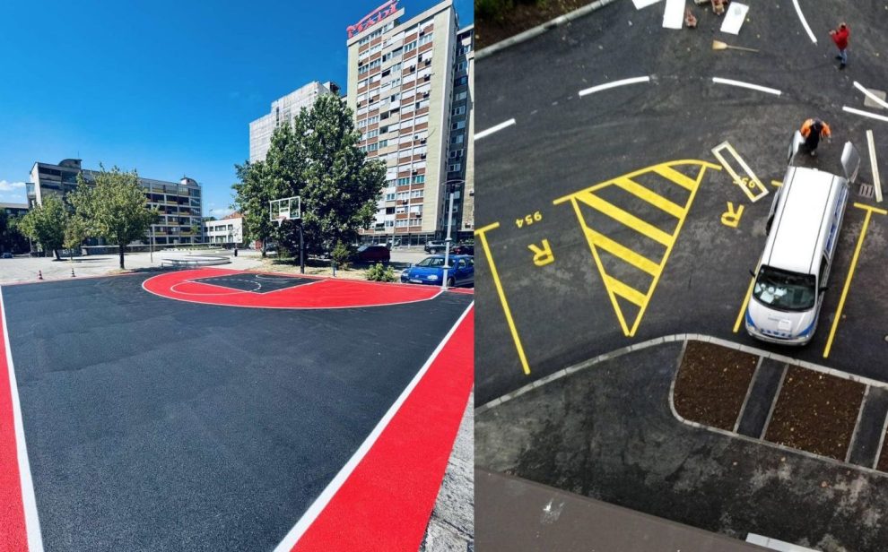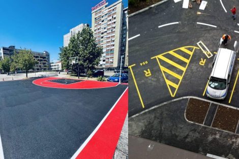Novi parking prostor, smješten uz zgradu, sada omogućava lakše i sigurnije parkiranje za stanare i posjetitelje, dok je popločani trg oplemenjen urbanim mobilijarom i stazama koje povezuju glavne prilaze objektu.
