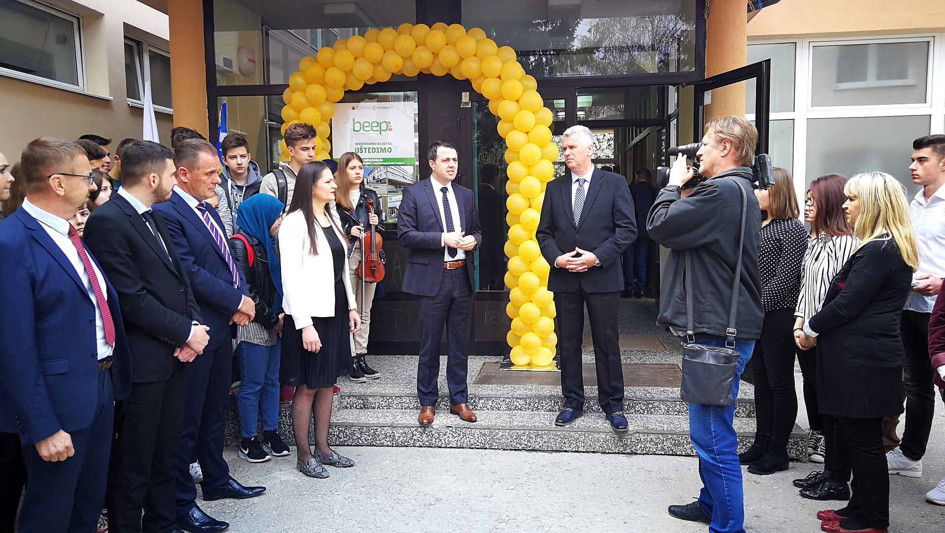 Svečanu vrpcu, zajedno s direktorom škole, presjekli su premijer ZDK Mirza Ganić i resorni ministar Spahija Kozlić, u prisustvu ministara unutrašnjih poslova Darija Pekića te prostornog uređenja, prometa i komunikacije i zaštite okoliša Arnela Isaka.