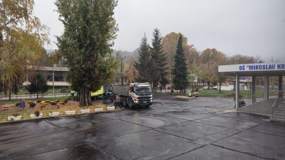 Danas je završeno asfaltiranje dvorišta Osnovne škole “Miroslav Krleža” Zenica što je bila završna faza projekta koji je uključivao i izgradnju nove nadstrešnice i pristupne rampe na ulazu u školu.