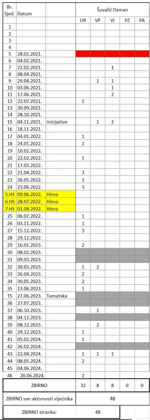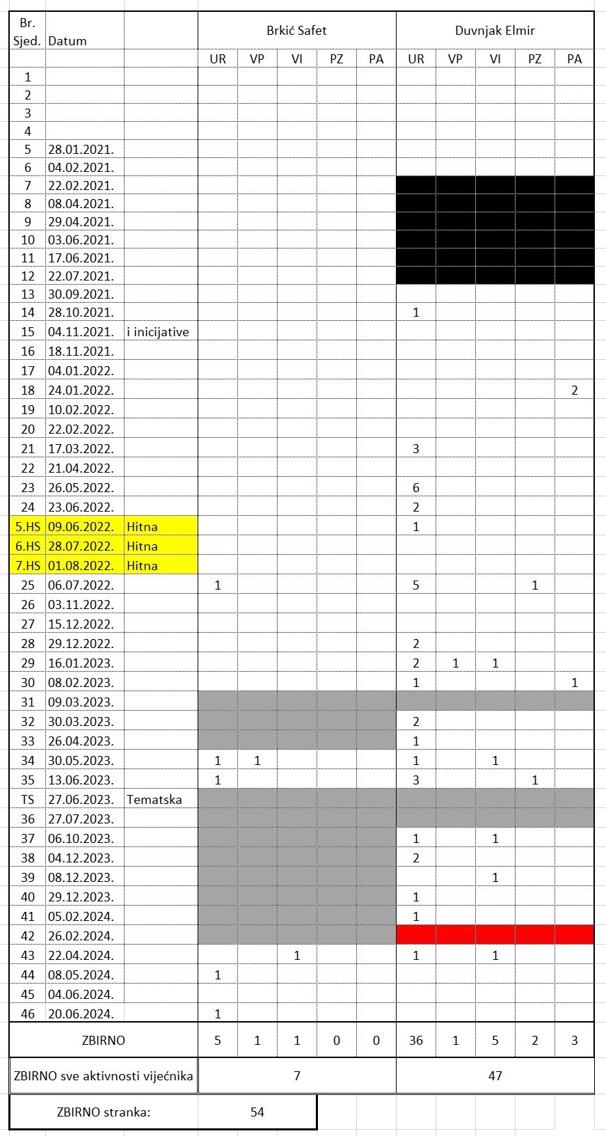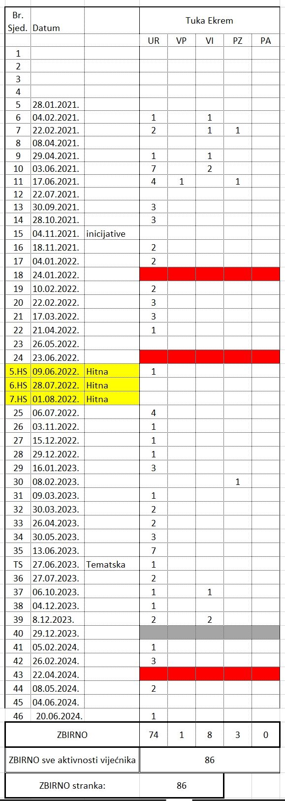 NAPOMENA : U galeriji na dnu teksta objavljujemo i podatke, po strankama i pojedincima, unutar Klubova, za svaku sjednicu, onako kako su evidentirani u ukupnom zbiru.
