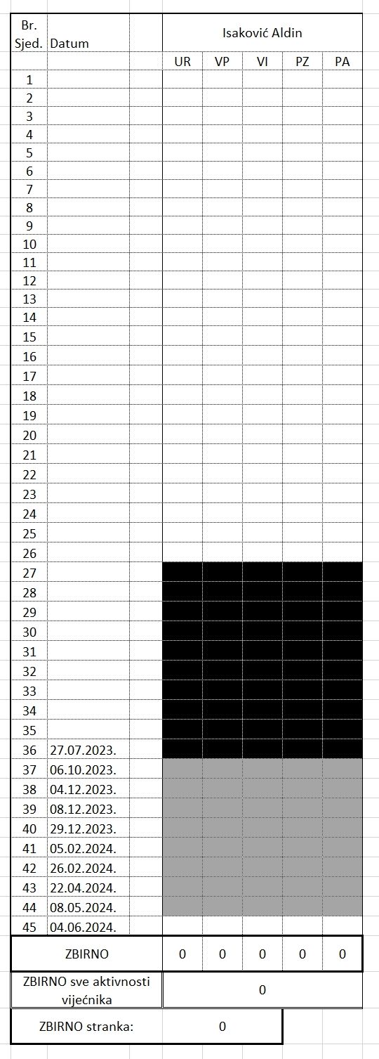Pod aktivnošću – “učešće u raspravi” se podrazumijeva jedno učešće po jednoj tački dnevnog reda, bez obzira da li je neki vijećnik po toj tački izlazio više puta (npr. zbog ispravki krivih navoda i sl.).