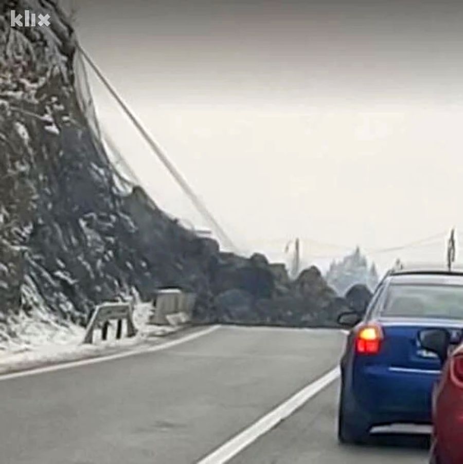 Za sada nije poznato ni kako je došlo do odrona, a kako je vidljivo, ni zaštitna mreža nije uspjela zaustaviti veliku količinu materijala koji je završio na cesti. Za sada je u potpunosti obustavljeno odvijanje saobraćaja na dionici Papratnica – Žepče, a uskoro se na mjestu događaja očekuje i teška mehanizacija za uklanjanje materijala. Foto: Klix/Zdici.info