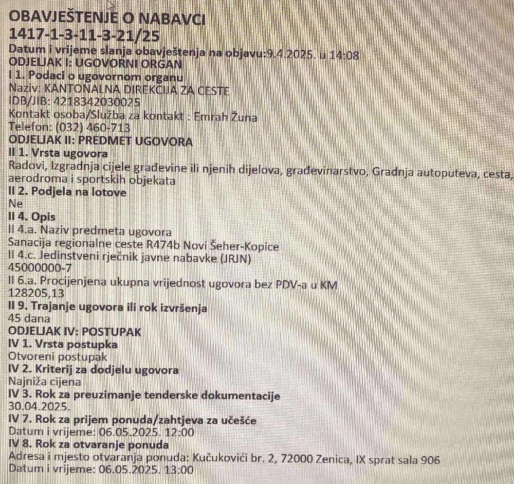 „Plan zaštite, održavanja, rekonstrukcije i izgradnje regionalnih cesta za 2025. godinu kojeg je jednoglasno na prijedlog Kantonalne direkcije za ceste ZDK usvojila Vlada ZDK predvidio je utrošak 24.664.000 KM za poboljšanje putne infrastrukture u svih 12 gradova i općina ZDK. Više je programa u ovom Planu, a ovaj kojim idemo u dugo očekivanu sanaciju ceste Novi Šeher – Kopice, koji je od velikog značaja ne samo za stanovništvo ove dvije mjesne zajednice već i za ljude u Domislici, Kamenici, Komušini, pa i mnogim drugim koji koriste ovaj trenutno najkraći cestovni pravac koji povezuje naš kanton prema Tesliću i Banja Luci, vrijedan je 2.625.090 KM. U okviru ovog programa već su raspisani javni pozivi za izvađače radova na sanaciji cesta Zenica – Arnauti između dva kamenoloma, Zenica – Ovnak na dionici kroz Pojske, a u planu su i radovi na cesti R474 u općini Tešanj, izrada propusta kod O.Š. Huso Hodžić, izrada trotoara uz vestu kod Piljužića, sanacija ceste R443 Visoko – Kiseljak, sanacija cesta Zavidovići – Maglaj, Podlugovi – Breza itd“, izjavio je Adnan Šabani, ministar za prostorno uređenje, promet i komunikacije i zaštitu okoline Zeničko – dobojskog kantona.