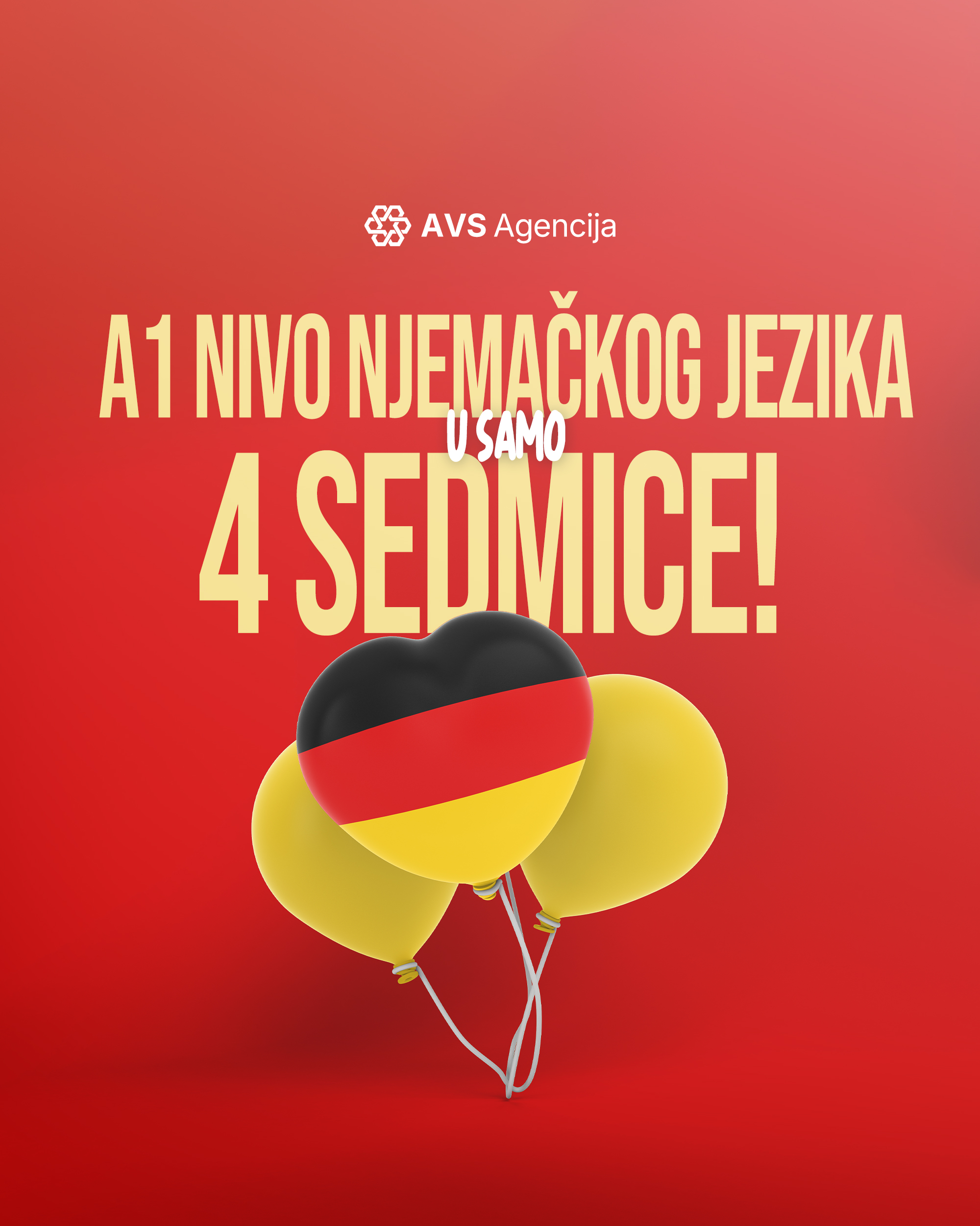 ✨ AVS Agencija osim SPRINT kursa nudi i kurseve njemačkog jezika svih nivoa (A1, A2, B1, B2), kao i stručne obuke za njegovatelje i pomoć pri nostrifikaciji diploma.