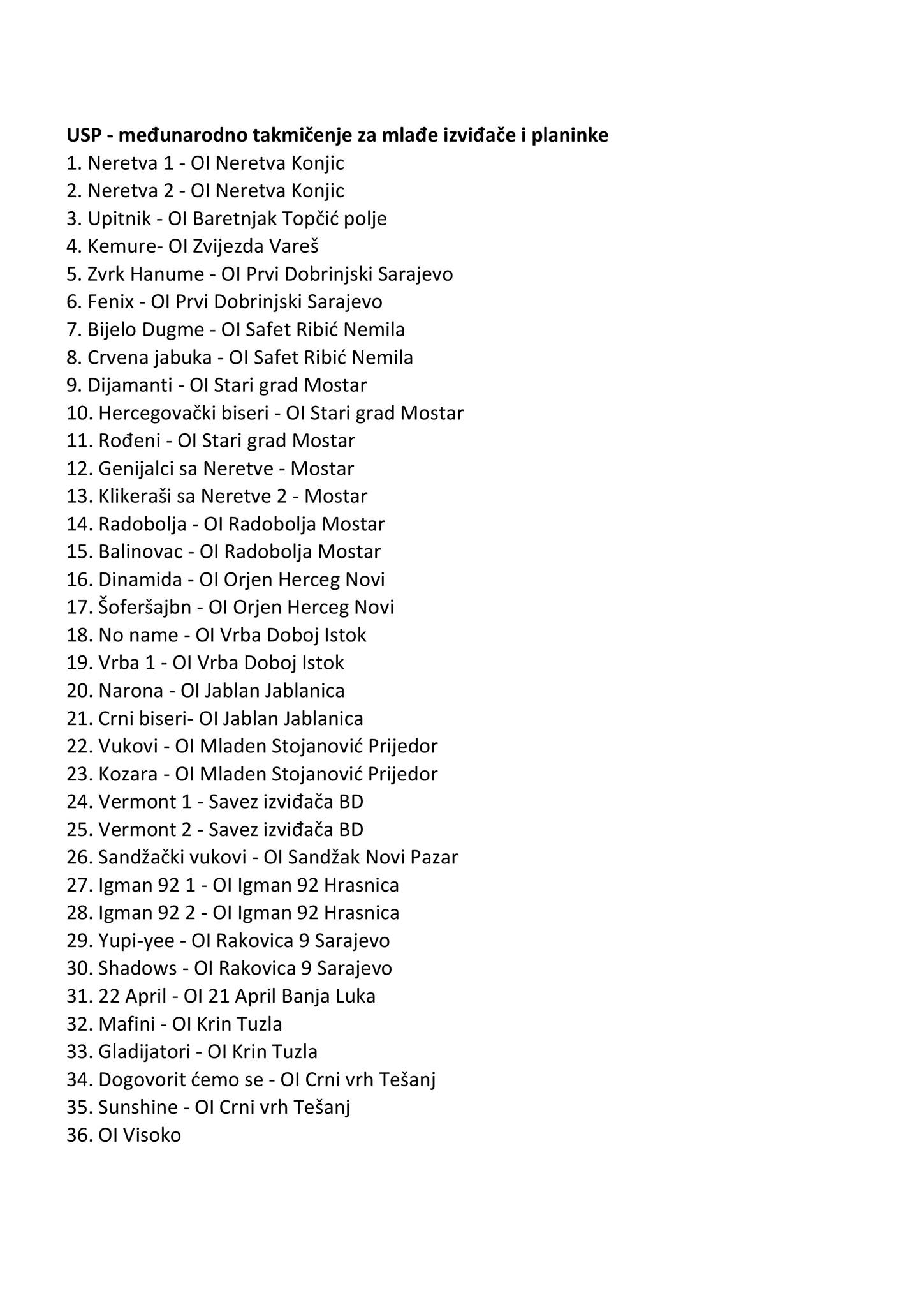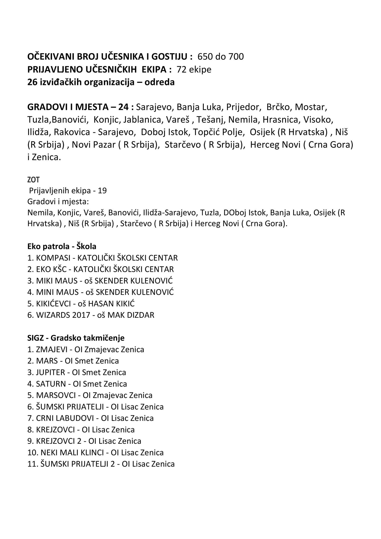 PRIJAVLJENO UČESNIČKIH EKIPA : 72 ekipe 26 izviđačkih organizacija – odreda