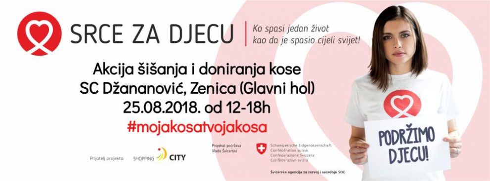 Pozivamo vas na akciju šišanja i doniranja kose u Zenici 25. avgusta, 2018. godine u periodu od 12:00 do 18:00 h, u glavnom holu SC Džananović.