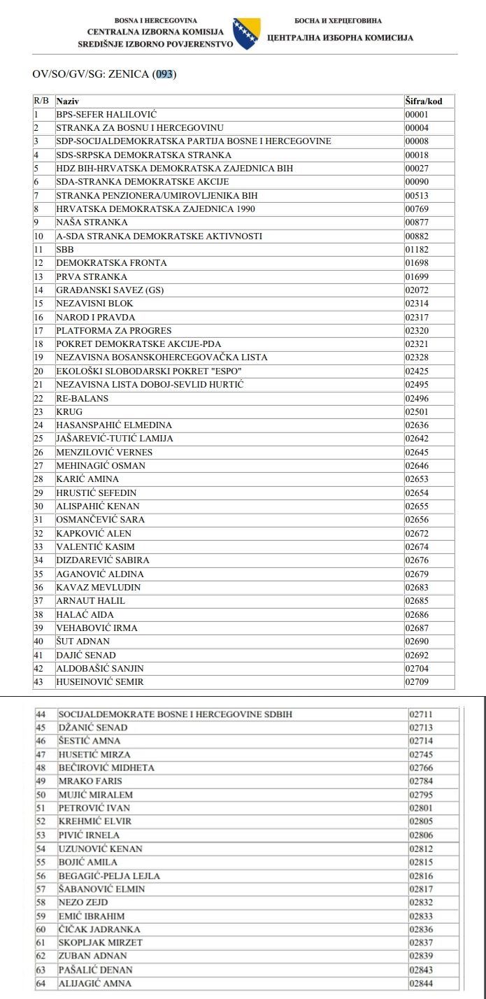 Podsjećamo da će na svakoj od ovih lista građani moći zaokružiti SAMO jedan broj, odnosno stranku/pojedinca. Imena kandidata stranaka za gradonačelnika, kao i Liste vijećnika koje su predložile stranke, biće poznate naknadno, najvjerovatnije po zvaničnom potvrđivanju datuma izbora.