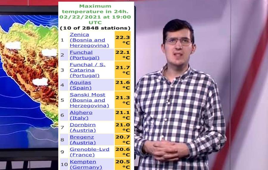 Zenica je 22.02.2021. bila najtopliji grad Europe.