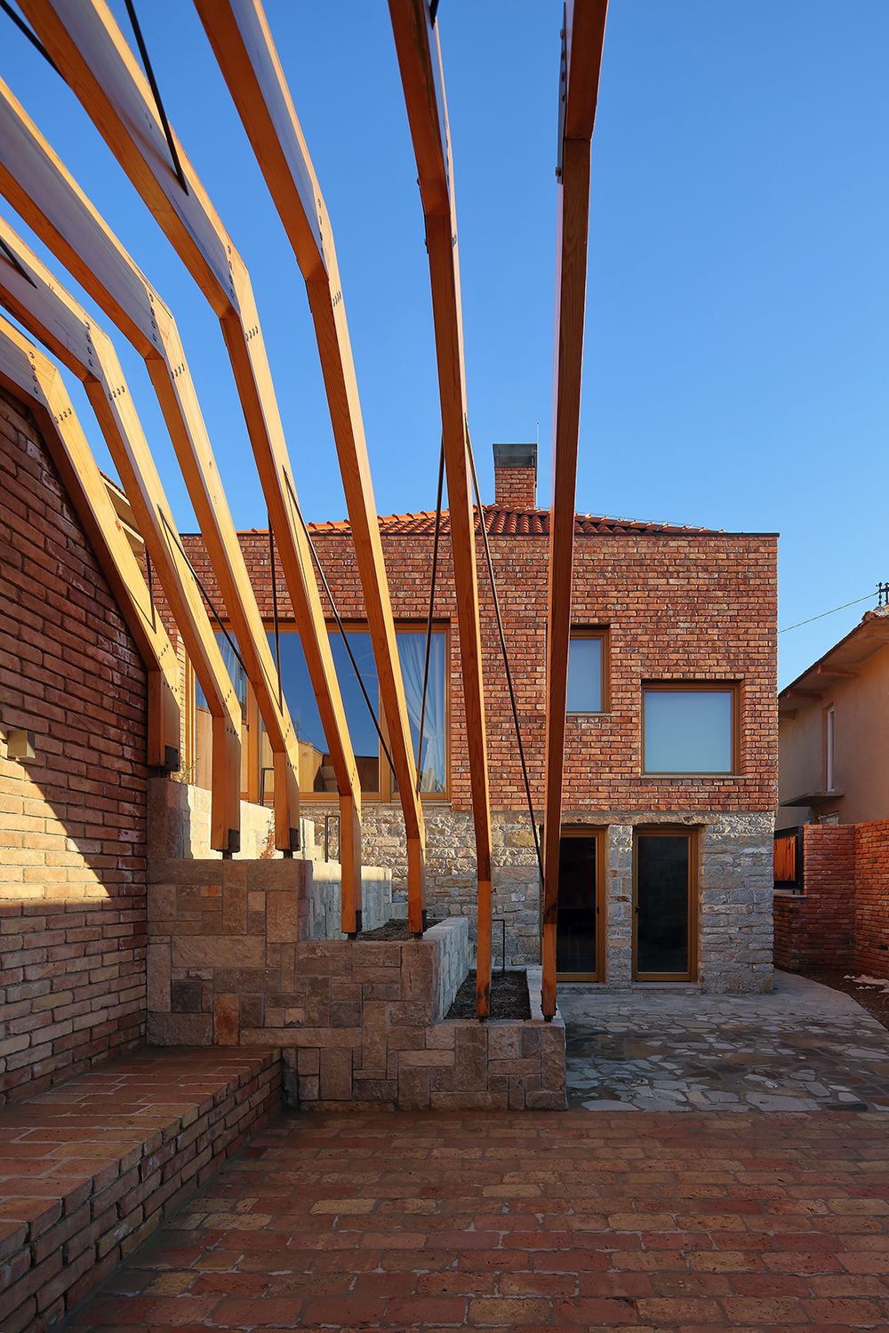 Iako je prvobitna ideja bila obnova stare male porodične kuće, zbog njenog trenutnog stanja bilo je neophodno izvršiti djelimično rušenje i zatim veliki dio ponovo izgraditi. Ipak, zadržani su osnovni principi stare bosanske kuće – centralni kamin, kosi krov, dva unutrašnja dvorišta.