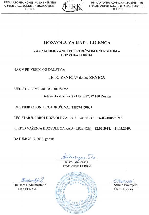 Zenica ostaje bez sve tri opcije grijanja?- Regulatorna komisija za energiju u FBiH (FERK) je krajem prošlog mjeseca donijela Rješenje o oduzimanju dozvole za rad – licence za opskrbu električnom energijom KTG-u Zenica. Ova informacija nije naišla ni na kakav odjek u Zenici, iako može značiti kraj “snova” o gradnji Termoelektrane na plin, kao budućeg snadbjevača ovog grada toplinskom energijom.