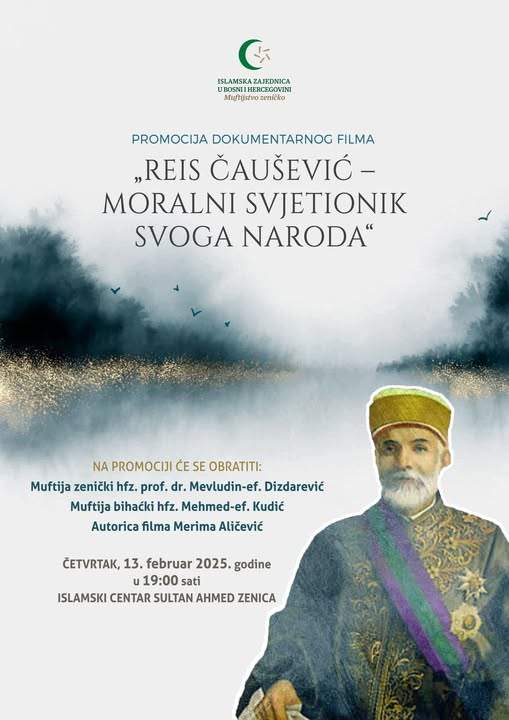 U Islamskom centru Sultan Ahmed u Zenici u četvrtak, s početkom u 19.00 sati, bit će održana promocija dokumentarnog filma “Reis Čaušević – moralni svjetionik svoga naroda”.