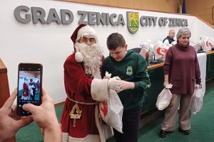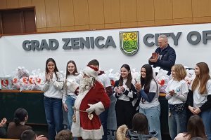 su učestvovala djeca iz zeničkog vrtića “Mala tratinčica”, volonteri “Dobročinstva” iz OŠ “Mak Dizdar” Zenica i, na posebno zadovoljstvo onih kojima su uručeni paketići, Djeda mraz.